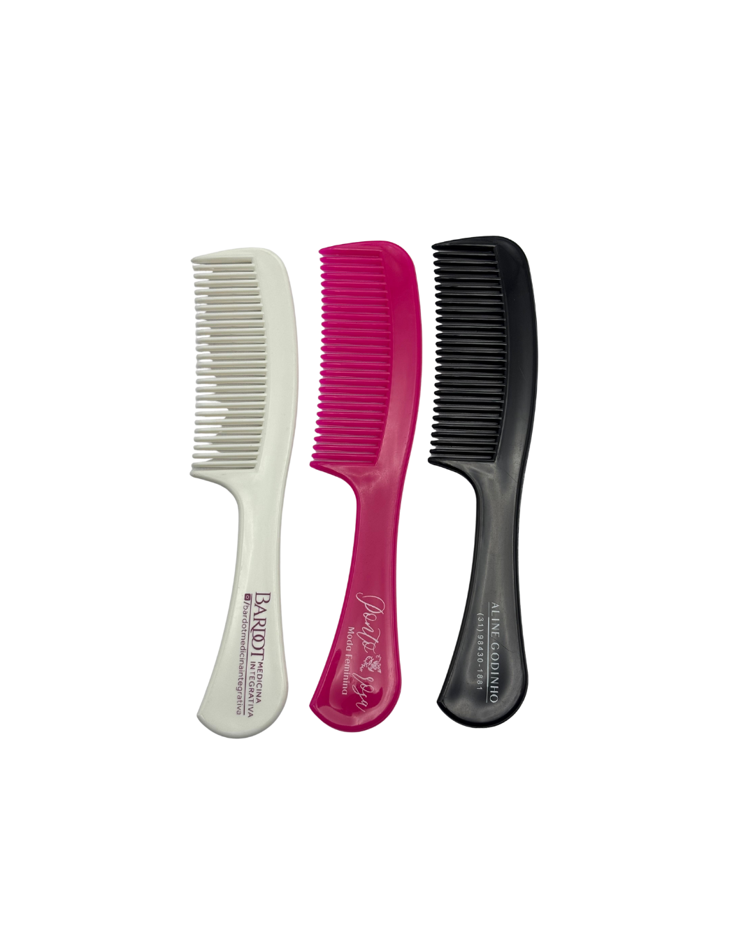 Pente com cabo, ideal para kits de higiene e ações promocionais.